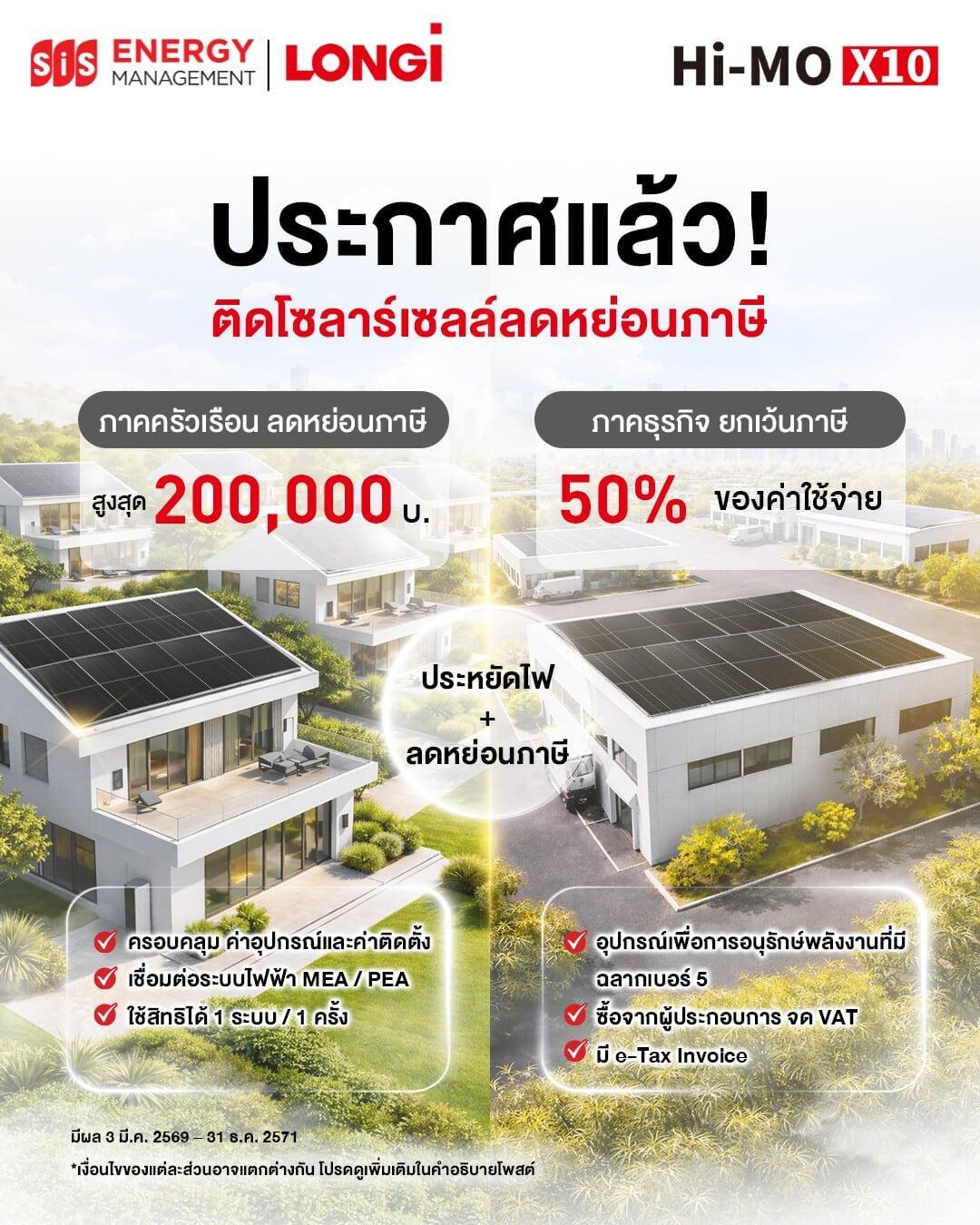 สนใจแผงโซลาร์เซลล์ LONGi ติดต่อตัวแทนจำหน่าย SiS ทั่วประเทศ