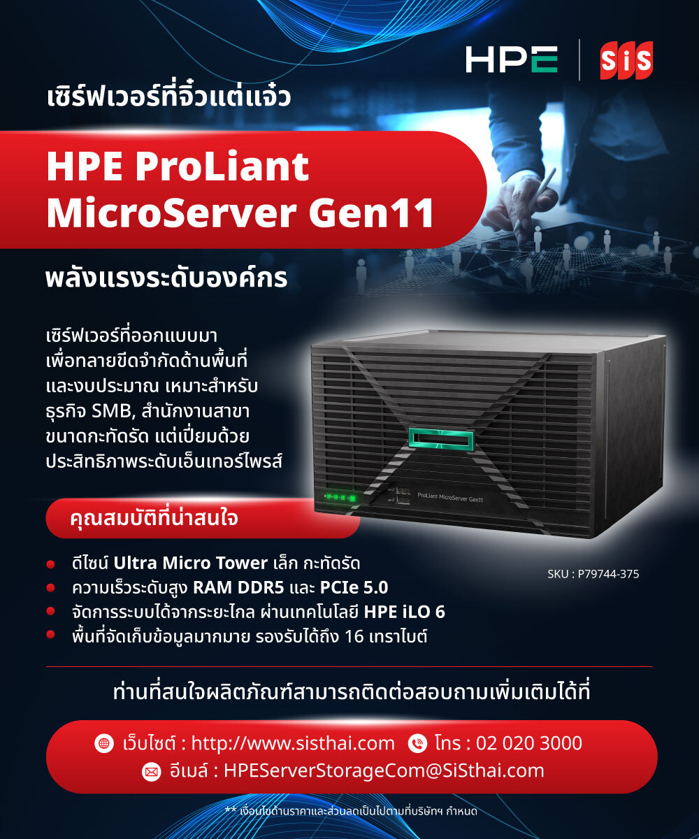 HPE ProLiant MicroServer Gen11 เซิร์ฟเวอร์ขนาดกะทัดรัดที่ทรงพลังระดับองค์กร ตอบโจทย์ธุรกิจยุคใหม่