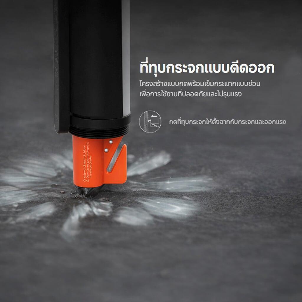 ที่ทุบกระจกแบบดีดออก (Spring-loaded) : ออกแบบมาเพื่อสถานการณ์คับขัน ใช้กดตรงกระจก → แตกทันที ไม่ต้องออกแรง ช่วยให้คุณออกจากรถได้เร็วที่สุดเมื่อเกิดเหตุฉุกเฉิน