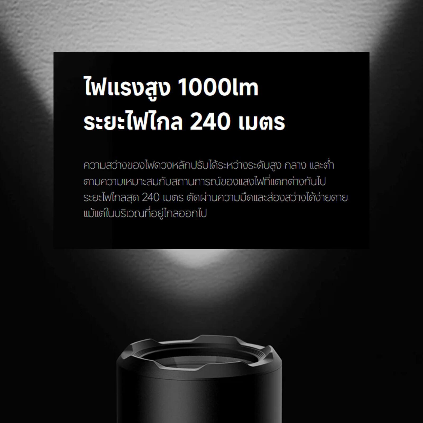 ส่องได้ไกลถึง 240 เมตร ปรับได้ 3 ระดับ (สูง / กลาง / ต่ำ) ซูมโฟกัสได้อิสระ จากไฟกว้าง → ไฟพุ่งไกล